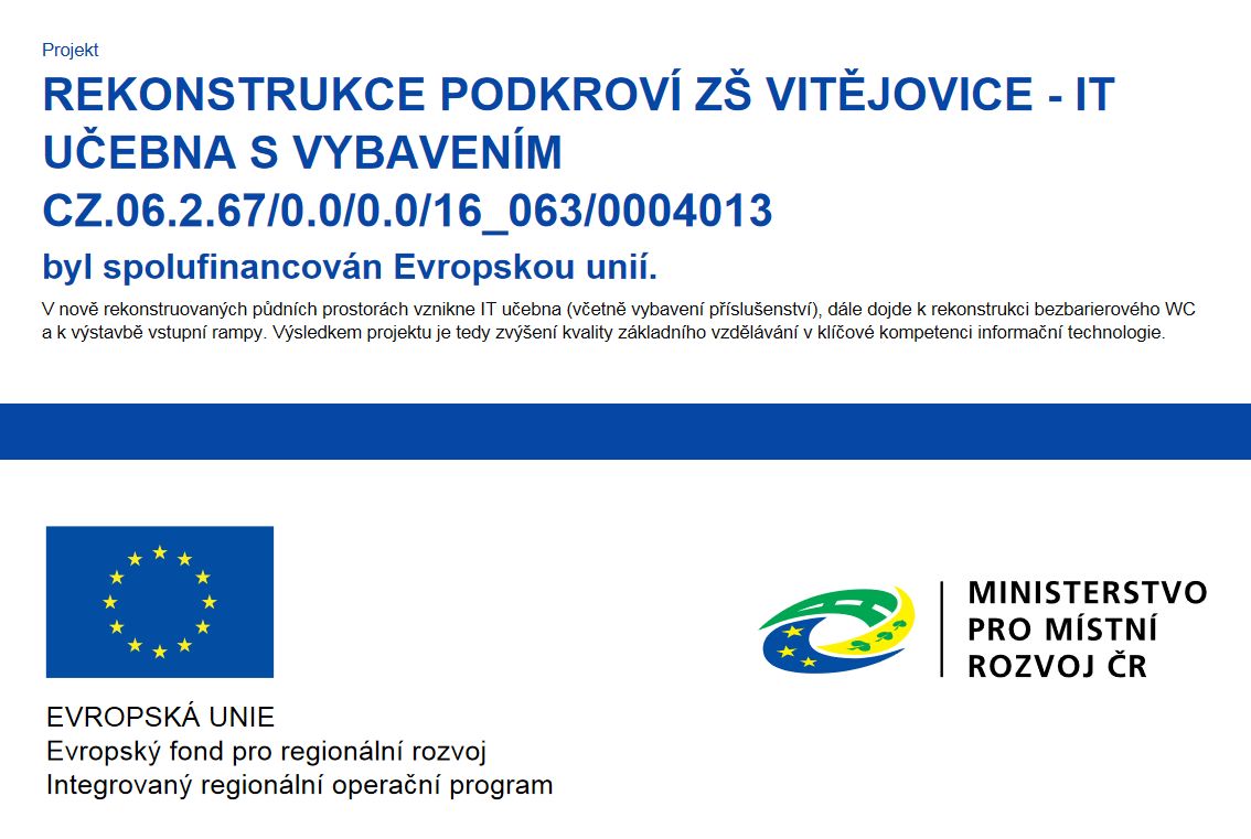 Projekt rekonstrukce podkroví ZŠ Vitějovice