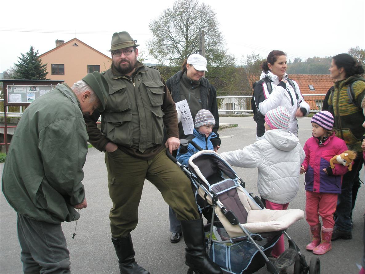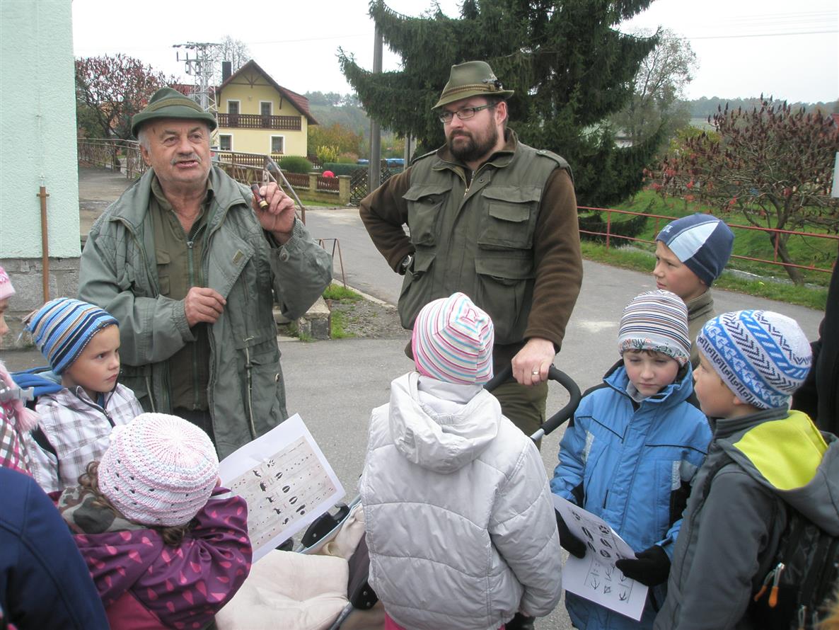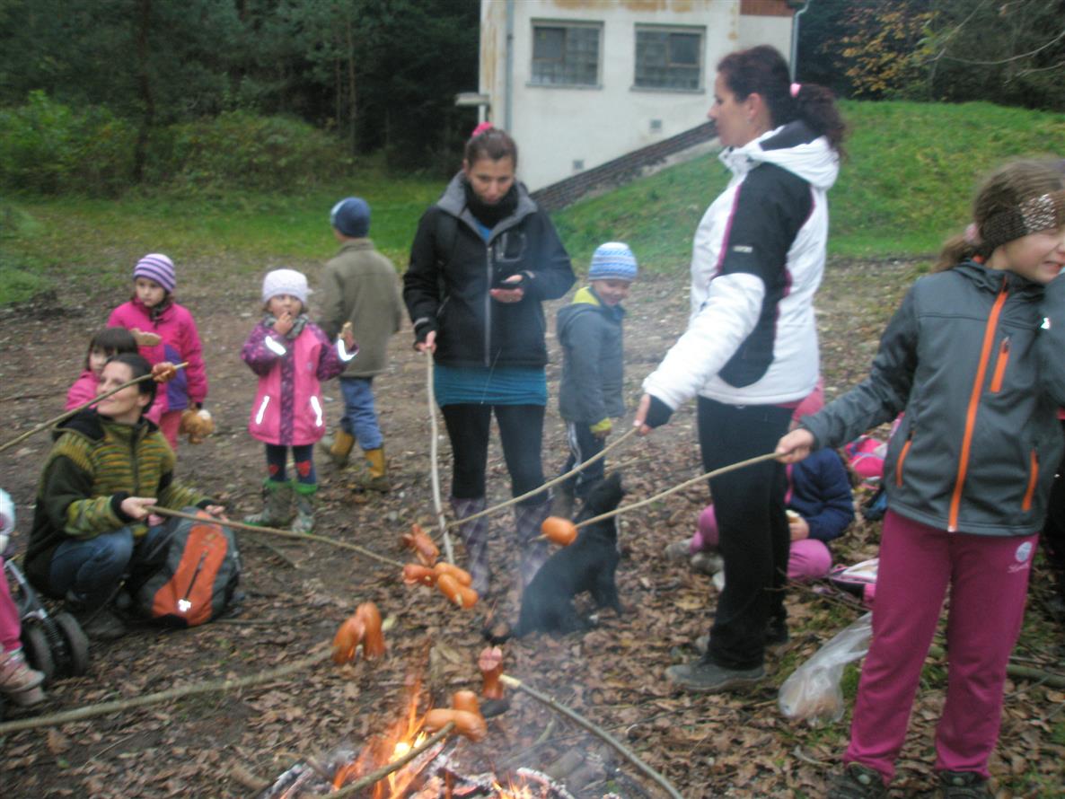 V sobotu 25.10.2014 jsme se vypravili do polí a luk najít stopy zvířat, které žijí v našem okolí. Doprovázeli nás dva zkušení myslivci pan Šamata a pan Lacina, kteří nám po cestě vyprávěli o životě zvířat. Podařilo se nám najít stopy srnek a divočáka, ale půda byla tak podmáčená, že se podařilo odlít stopy pouze srnek. Jsou vystaveny v knihovně. Prohlídli jsme se i kazatelnu pod Slepičárnou a na závěr jsme upekli špekáčky. Myslím, že si 17 dětí a několik rodičů užilo příjemné, i když podmračené, odpoledne. Děkuji myslivcům za jejich ochotu a těšíme se na jaro, kdy půjdeme do lesů za zvířátky i s dalekohledem.