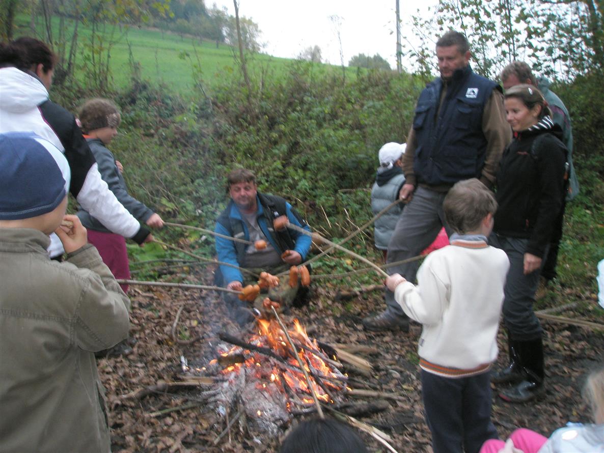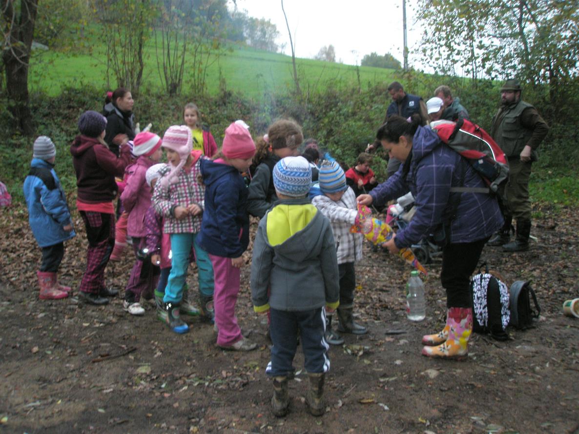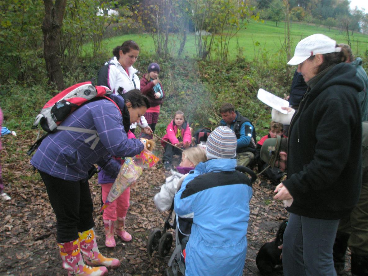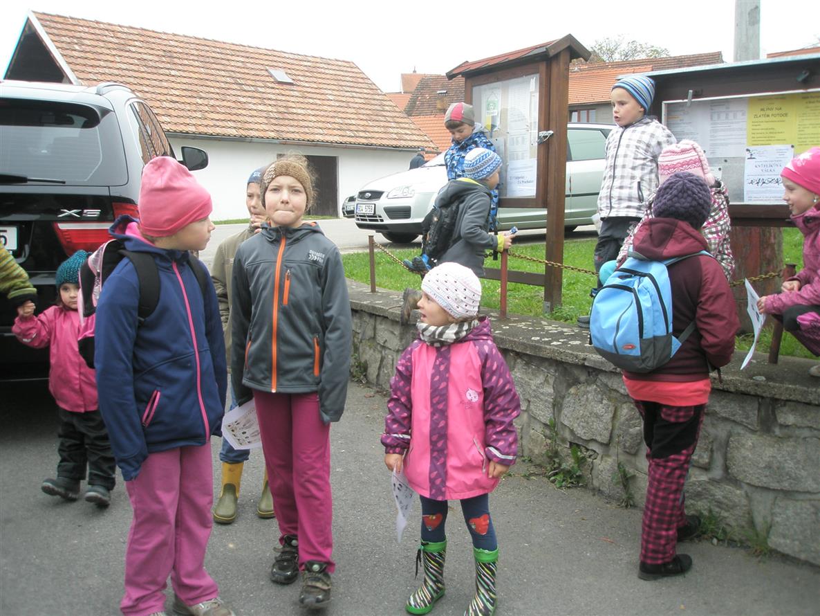 V sobotu 25.10.2014 jsme se vypravili do polí a luk najít stopy zvířat, které žijí v našem okolí. Doprovázeli nás dva zkušení myslivci pan Šamata a pan Lacina, kteří nám po cestě vyprávěli o životě zvířat. Podařilo se nám najít stopy srnek a divočáka, ale půda byla tak podmáčená, že se podařilo odlít stopy pouze srnek. Jsou vystaveny v knihovně. Prohlídli jsme se i kazatelnu pod Slepičárnou a na závěr jsme upekli špekáčky. Myslím, že si 17 dětí a několik rodičů užilo příjemné, i když podmračené, odpoledne. Děkuji myslivcům za jejich ochotu a těšíme se na jaro, kdy půjdeme do lesů za zvířátky i s dalekohledem.