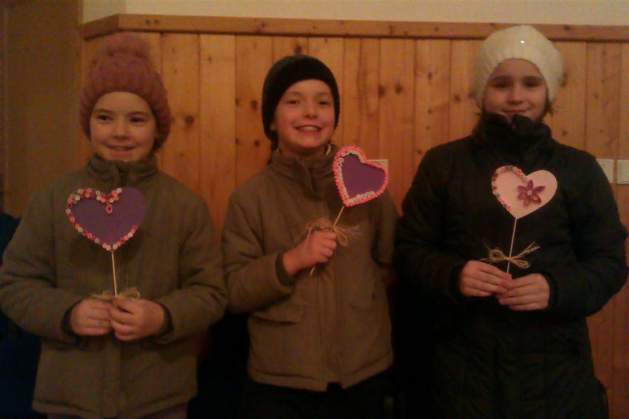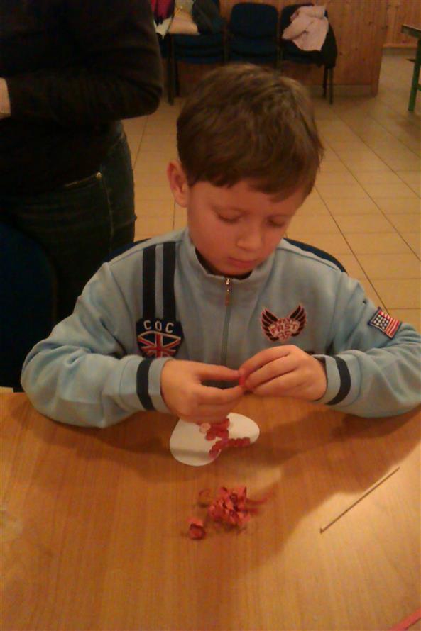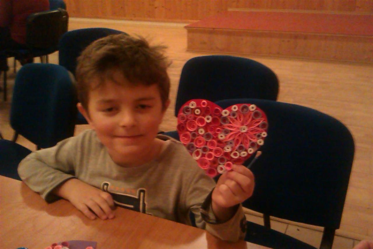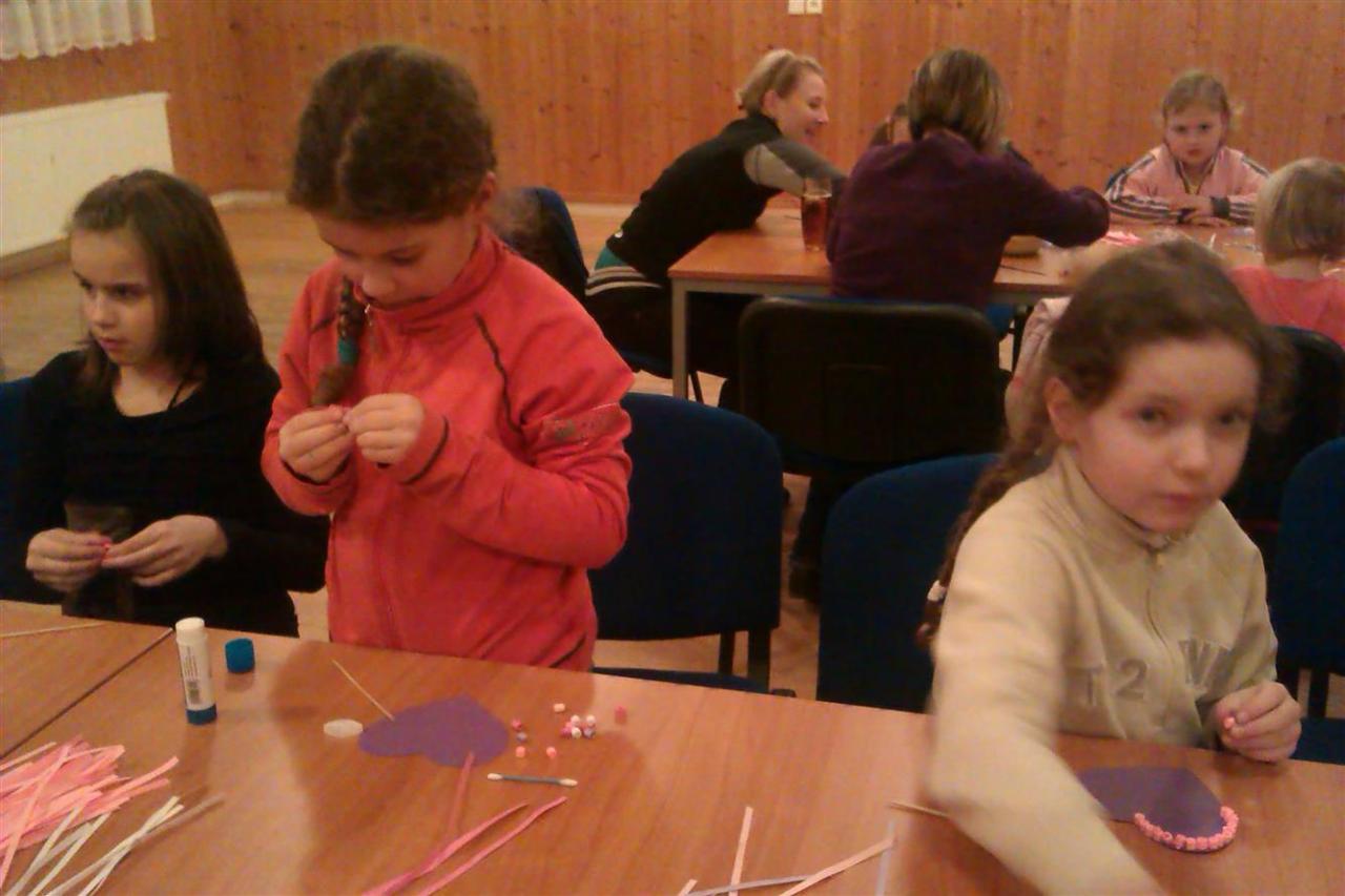 V úterý 11.02.2014 jsme se opět sešli v sále, tentokrát za účelem vyrobení dárečku pro někoho milého ke svátku sv. Valentýna. Lektorka paní Lebedová pro nás připravila papírová srdíčka různých velikostí, na která jsme nalepovali papírové "šneky". Šneky jsme si vyráběli sami z proužků barevných papírů. Každý si vytvořil srdíčko dle své fantazie. Strávili jsme příjemné dvě hodiny nejen tvořením, ale i povídáním a děvčata nám při práci i krásně zazpívala. Troufám si tvrdit, že bylo spokojeno jak 21 dětí, tak i maminky těch nejmladších, které přišly svým dětem s výrobou pomoci. Už se těšíme na březnové tvoření :-)